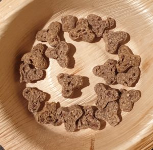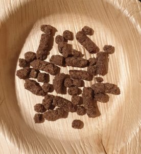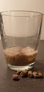 Door de brokjes eerst te vermalen. wat tenslotte een konijn ook eerst doet, zette de brokjes een weinig uit en was er een lichte vorm van gelei waarneembaar.